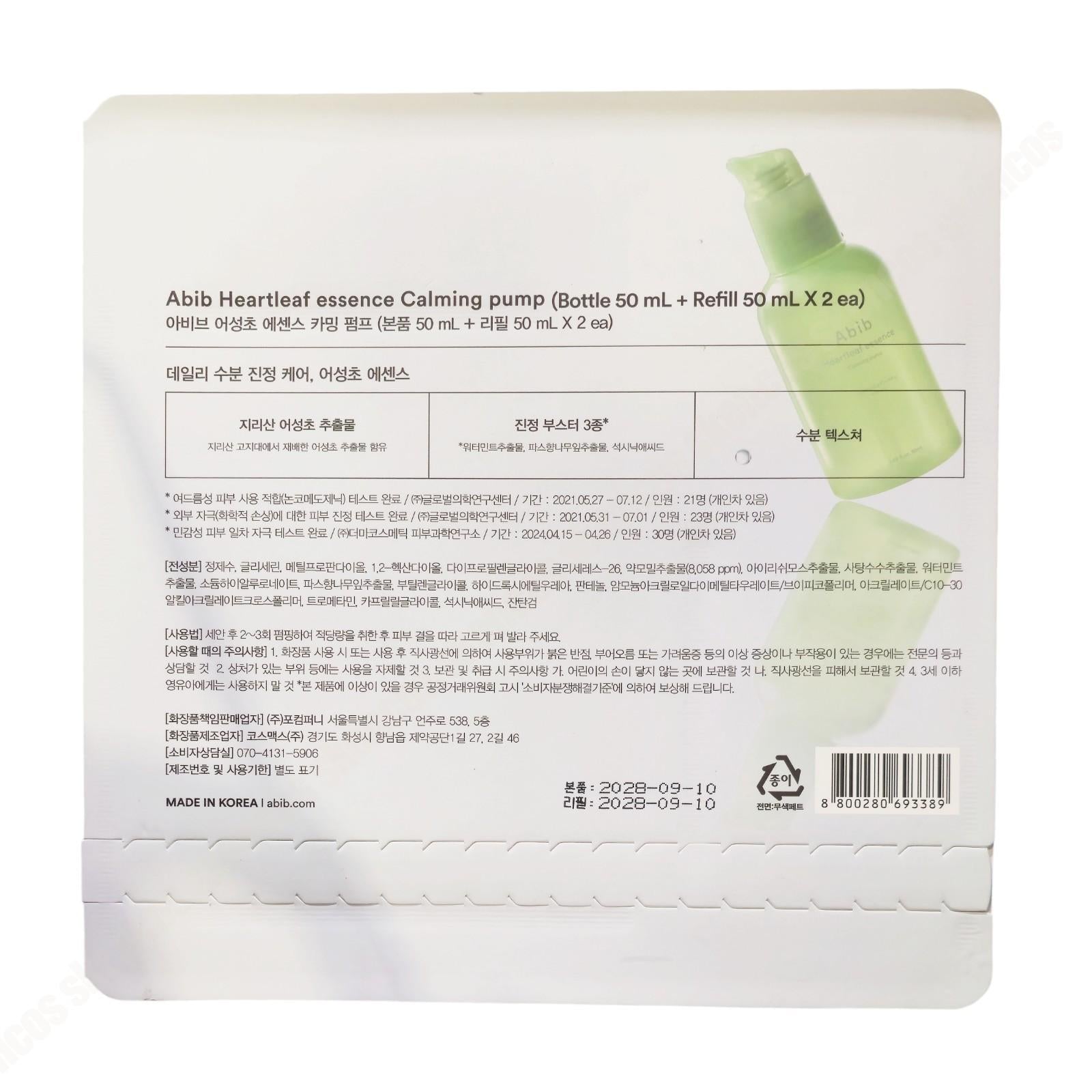 Abib Heartleaf Essence Calming Pump 50ml + 2 Refills/Essence-Soothing-Korea