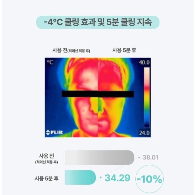 * Instant Cooling: Reduces skin temperature by -6°C upon application.