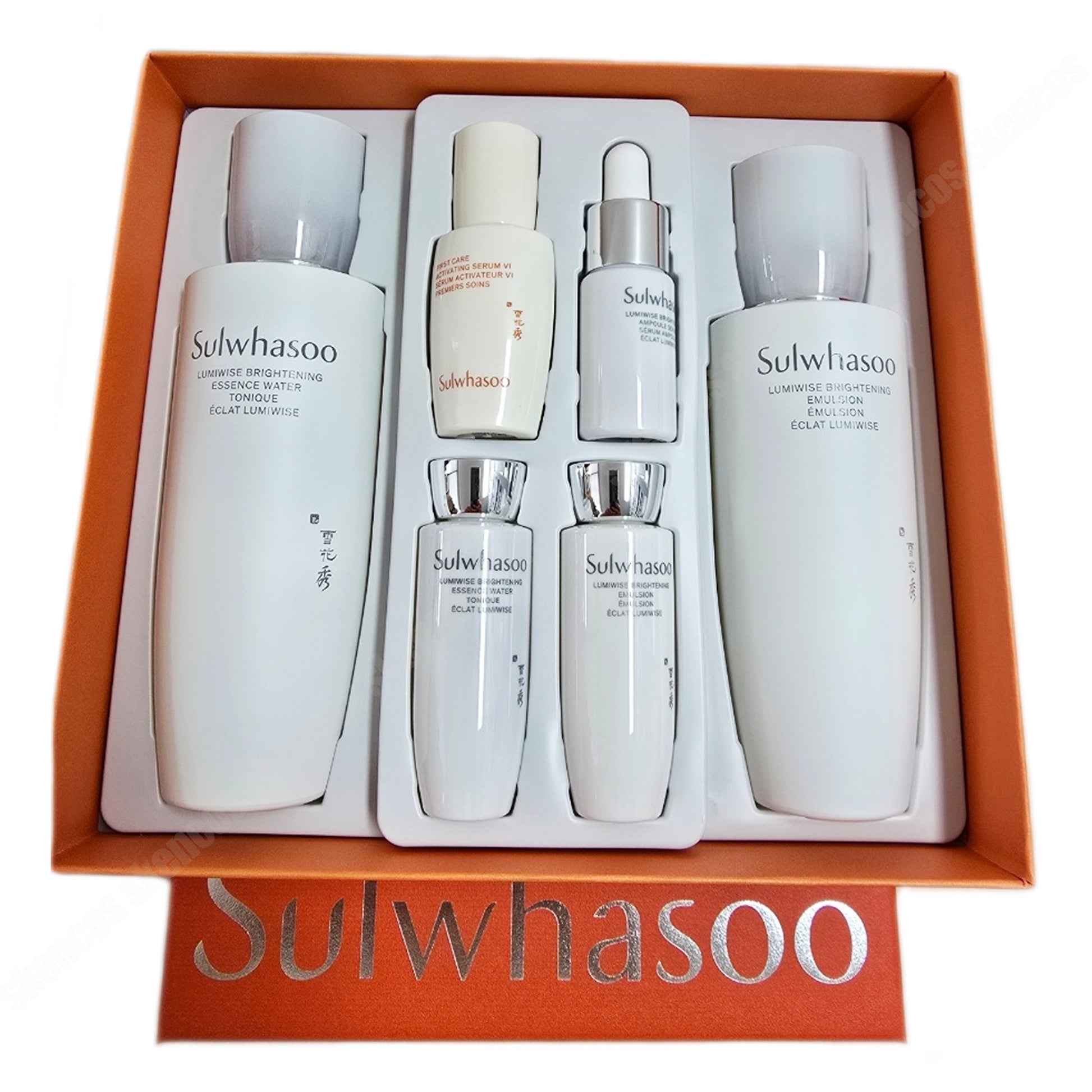 | 重量または体積 | 主な製品: スノーワイズ ブライトニング ウォーター 125ml、スノーワイズ ブライトニング エマルジョン 125ml / サンプル: スノーワイズ ブライトニング ウォーター 15ml、スノーワイズ ブライトニング セラム 8ml、スノーワイズ ブライトニング エマルジョン 15ml、スノーワイズ ブライトニング クリーム 5ml、スノーワイズ ブライトニング UV プロテクター No.2 ソフトピーチ SPF50+/PA+++ 5ml |